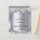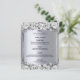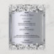 Um cartão de cardápio elegante e glamouroso. Rosas de cor branca e preta, como decoração. Modelos para seus nomes, data e menu de casamento. Um falso quadro prateado e uma cor metálica de aparência fina prateada. Letras pretas coloridas. Fundo: fundo metálico prateado falsa.