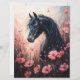 Um cavalo majestoso rodeado por delicadas flores silvestres cor-de-rosa-pinceladas, capturando a graça e a beleza da natureza num cenário macio e romântico.
