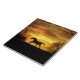 Um belo pôr do sol amarelo e ouro atrás de um cavalo correndo. Uma silhueta maravilhosa. Um presente de excelente para o amante dos cavalos, este azulejo de arte também parece um excelente enquadrado.