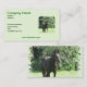 Cavalo de baía escuro em um campo de grama em um cartão de visita.