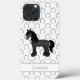 A ilustração original de desenho animado de Destei de um cavalo Gypsy Vanner de cor preta / Clydesdale / Shire. O fundo tem um padrão de ferraduras de cinza. Há também uma área de texto personalizável para um nome.