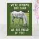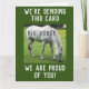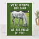 Saudações com uma mensagem engraçada! Estamos enviando este grande cavalo (porque) estamos orgulhosos de você. Imagem é uma fotografia de um cavalo branco pairando em um campo.