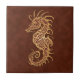 Um design tribal do cavalo marinho decorado com redemoinhos e padrões de ponto intrincados. As linhas e os círculos do complexo são o bege claro colorido que é destacado para criar um brilho subtil na superfície. O interior é terminado com um profundo - bronzeie que seja ecoado no fundo, criando um contraste bonito. Uma sombra cai apenas abaixo dos peixes delicados que fazem o parece flutuar apenas acima da superfície deste azulejo. O design estilizado é uma representação impressionante desta criatura pequena estranha e maravilhosa do mar.