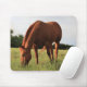 Mousepad inteiramente customizável com uma foto de um cavalo marrom que pasta em um campo.