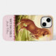 Proteja seu telefone com estilo com esta capa de iPhone personalizável que apresenta uma ilustração detalhada de um cavalo palomino dourado contra um cenário de um pasto verde exuberante e pôr do sol. Com sua borda rendada trendy e paleta de cores rosa suave, azul e dourado, este design adicionará um toque elegante ao seu dispositivo enquanto mostra seu amor por aventuras equestres. Adicione o texto escolhido e o nome da instalação de equitação favorita do seu destinatário para criar um presente único para entusiastas de cavalos de todas as idades.