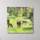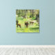 Cavalos e Colas na Pastura - Arte Canvas Quadrada