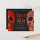 Cabeça de crânio gótica Salve o orçamento da data laranja, estilo de vintage preto no convite de casamento do Halloween. Divertido, assustador, celebração legal Hallowedding. Até que a morte nos faça um roteiro. Imagem copyright Marg Seregelyi Fotografia.