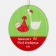 Os primeiros enfeites de natal do bebê caracterizam uma cegonha adorável que leva um grupo do pacote do bebê verde & branca fundo pontilhado em uma polca com uma banda vermelha! Aperfeiçoe para um menino ou uma menina! Personalize com sua informação do bebê e data e você são todos ajustam-se para ir! Presente datado maravilhoso da lembrança para Natal do seu bebê o ø.
