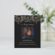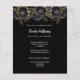 Um clássico fundo negro. Decorado com flores pretas e ouros, florais. Personalize e adicione nome, datas e texto. Adicione uma foto. Funeral/celebração do convite à vida. 1 folha = 1 convite impresso de borda a borda.