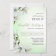 Celebração da vida Convite Funeral Floral. Convite para memória personalizada floral elegante e delicada. Lírios brancos de aquarela em um fundo verde-claro. O texto acrescenta um belo texto. Lírios Brancos é uma flor funerária clássica, e simboliza Pureza e Inocência. Convide e reúna-se para honrar a memória de seus entes queridos, refletir sobre o amor, alegria e luz que eles trouxeram para suas vidas. Creme leve de volta.