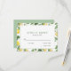 A primeira época de colheita de limão é do final do inverno ao início do verão. No entanto, você pode celebrar o prazer de um florescimento cítrico o ano inteiro com este convite de casamento do tipo limoneiro rsvp. Este item em particular apresenta um padrão de limão amarelo e verde vibrante junto com seus detalhes de casamento em cinzas profundas ou verdes. O verso apresenta uma jade verde para felicitar a frente. Perfeito para casamentos de primavera e verão, mas excelente o ano todo.