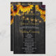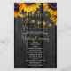 Elegante modelo do programa de cerimônias de bodas rusticais apresentando belos buquês laranja-amarelos brilhantes e cordas de luzes cintilantes em um país de fundo de madeira marrom-escuro. +++++++++++ + Personalize-o com os seus detalhes.++++++++ Adequado para jardim de verão quic de vintagem de países russos | outono caem no exterior.