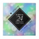 Celebre o 24º aniversário de casamento com este azulejo na moda! As letras esbeltas a preto e branco com confete hexagonal em um fundo opal iridescente acrescentam um toque memorável para esta ocasião especial e marco extraordinário. Personalize com os nomes dos casais e anos de casamento. Design © W.H. Sim. Mais informações em zazzle.com/expressionsoccasions