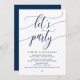 Linda Caligrafia Azul do Marinho Moderno, Anúncio de Elopemento de Casamento, Cartão de Convite (Vamos). Isto é perfeito para a sua recepção de casamento e festa de celebração de posto. Adicione seus detalhes em fontes / letras correspondentes. #TeeshaDerrick
