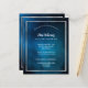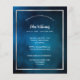 Um fundo azul escuro do céu, um falso quadro prateado. Personalize e adicione nome, datas e texto. Adicione uma foto atrás.