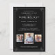 O Elegante design preto e branco apresenta texto branco sobre fundo preto. Três das suas fotografias favoritas podem ser colocadas no fundo. O texto branco preto facilita a leitura dos detalhes. Um quadro clássico de Deco de Arte rodeia seu texto e fotografias dando ao convite uma qualidade de eterno. Todo o texto pode ser facilmente editado para criar uma lembrança pessoal. Precisa de ajuda para encontrar itens correspondentes? Me mande mensagem. Eu sou Nelda e adoraria ajudar!