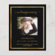 Um fundo preto, uma falsa estrutura dourada. Personalize e adicione nome, datas e texto. Adicione uma foto atrás.