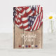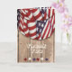 Esta placa de saudação apresenta bunting vermelho, branco e azul gravado sobre uma cerca com as mesmas estrelas de cor na parte inferior. Preencha o texto do modelo para qualquer ocasião em que o cobrir e o dentro saudarem, removerem o texto ou clique em personalizar para selecionar um estilo de fonte, tamanho e cor desejados.