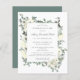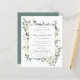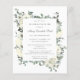 A celebração elegante de um convite à vida apresenta uma estrutura botânica de flores brancas e folhas verdes profundas no topo. O nome da pessoa morta está escrito em um texto tradicional. Todo o texto pode ser facilmente editado para criar uma lembrança pessoal.