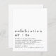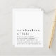 Um valor para o alternativo do ORÇAMENTO em tamanho menor de 4,5 x 5,6" de semirbrilho de 110 lbs, que é de espessura semelhante a um cartão postal (no entanto, não é adequado para uso como cartão postal). POR FAVOR, OBSERVE QUE HÁ UM convite por folha. Celebração do Orçamento do Convite para o Luncheon da Vida. Um simples design com muito espaço em branco para um toque moderno contemporâneo. O cabeçalho é grande em na moda lowercase com os detalhes abaixo. Personalize facilmente o texto para você. Você também pode alterar as cores do texto e do plano de fundo se desejar, por meio da opção personalizar mais nesta design totalmente personalizável.