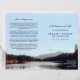Tranquilo e belo programa funerário com uma foto de um lago montanhês numa manhã sombria na floresta. Adicione uma foto do seu amado junto com seu nome e anos de vida e obituário. Adicionar ordem de serviço, tributos e reconhecimentos.