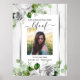 Linda cor d'água com buquês florais brancos. Design elegante e de tendência com tipografia de rico. Todo o texto é ajustável e fácil de mudar para as necessidades do seu próprio partido. Celebração elegante do excelente da Vida. Disponível em cores diferentes.