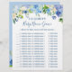 Hydrangea Floral Azul - Jogo de Nomes de Bebês de Celebridade - Folheto de Jogo de Chá de fraldas.