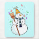 Feliz boneco de neve celebrando com confete flutuando ao seu redor.