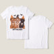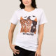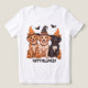 Esta t-shirt única apresenta três cães adoráveis a vestir chapéus de bruxa, capturando perfeitamente o espírito do Halloween. Adorado com lanternas de abóbora divertidas e morcegos voadores em cima, o design tem uma sensação divertida, mas assustadora. Com um estilo vibrante de desenho animado e cores equilibradas, esta camisa é ideal para os amantes de cães que procuram se divertir um pouco com o seu guarda-roupa de Halloween. Prepare-se para receber a temporada com um uivo e alguns amigos fantasmas bonitos!