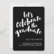 A moda, o estilo moderno convida os hóspedes a "celebrar o formando" em fontes cursivas populares com o olhar de letra de mão. Mostrado em branco clássico a preto, você pode personalizar facilmente a cor de fundo para corresponder ao seu esquema ou tema (também disponível com texto preto). Um convite ou um anúncio de festa de formatura único e moderno que é um alternativo excelente para o convite de fotos.