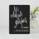 A moda, o estilo moderno convida os hóspedes a "celebrar o formando" em fontes cursivas populares com o olhar de letra de mão. Mostrado em branco clássico a preto, você pode personalizar facilmente a cor de fundo para corresponder ao seu esquema ou tema (também disponível com texto preto). A parte traseira do vazio da placa está disponível para mais personalização ou para adicionar uma foto. Um convite ou um anúncio de festa de formatura único e moderno que é um alternativo excelente para o convite de fotos.