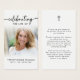 This modern memorial prayer card design features the phrase “Celebrating the Life of” paired with a soft photo layout and a classic Christian cross, creating a thoughtful balance of remembrance and gratitude. The reverse side includes an editable comforting prayer that honors a life well lived while offering words of faith and hope for family and friends. Change the text to another prayer, bible verse, poem or custom remembrance message. Clean white space and flowing script typography give this design an uplifting yet reverent feel, making it well suited for funerals, memorial services, and celebration of life gatherings. Its small and portable size (3.5x2") makes this keepsake card convenient to carry as a reminder of their life and spirit. Personalization makes these cards unique.