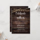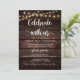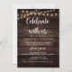 Belo Anúncio de Casamento Moderno Rústico com madeira escura, luzes de corda, tema de cabana rural, cartão de convite de casamento (Celebre conosco). Isto é perfeito para o seu casamento e festa de celebração pós-casamento. Adicione seus detalhes em fonte / letra correspondente.