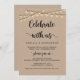 Lindo cartão de convite de casamento rústico moderno marrom kraft, luzes de corda, tema de cabana de fazenda, Anúncio de Casamento, Cartão de Convite (Celebre conosco). Isto é perfeito para o seu casamento e festa de celebração pós-casamento. Adicione seus detalhes em fonte / letra correspondente.