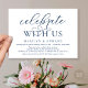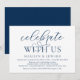 Convite de jantar ou festa de casamento minimalista romântico moderno com caligrafia simples em azul-marinho (Celebre conosco). É perfeito para o anúncio da sua fuga de casamento e celebração da festa, após o seu melhor dia. Adicione seus detalhes em fonte / letra preta correspondente.