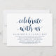 Roteiro Moderno em tema Azul Navy sofisticado, cartão de convite de casamento íntimo (Celebre conosco). É perfeito para o seu jantar de casamento íntimo casual à beira do lago, dança e festa.