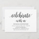 Celebre conosco, convites de casamento fuga. Este convite de casamento rústico em kraft é perfeito para a recepção do seu casamento e festa de celebração pós-casamento. Adicione seus detalhes em fonte / letra preta correspondente.