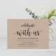 Celebre conosco, cartão de convite de casamento íntimo. Este cartão de convite de casamento rústico kraft é perfeito para a recepção do seu casamento e festa de celebração pós-casamento. Adicione seus detalhes em fonte / letra preta correspondente.