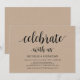 Celebre conosco, convites de casamento íntimo. Este convite de casamento rústico em kraft é perfeito para a sua recepção de casamento e festa de celebração pós-casamento. Adicione seus detalhes em fonte / letra preta correspondente.