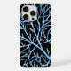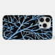 Trabalho de arte de abstrato mesmerizante com uma rede de ramos intrincados e azuis contra fundo preto profundo.