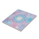 Soft turquoise, rose and violet tones create a calming atmosphere while the geometric pattern adds balance and harmony.
