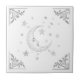"grey silver white delft", "celestial moon ceramic tile", "historic antique vintage stars", "astrology folk mythological art", "medieval lunar astrological mythology", "mystical mystic corner flourish", "occult masculine feminine decorative", "monochromatic gray la luna evening", "traditional cosmic star duality", "classic space night sky stars"