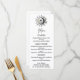Perfect for boho brides, night sky weddings, and astrology-inspired celebrations, this menu card embraces spiritual and enchanted motifs while maintaining a clean, minimalist layout. The monochrome palette keeps the design timeless and versatile, making it ideal for both modern and vintage-inspired weddings, witchy ceremonies, forest elopements, or celestial-themed receptions.