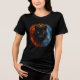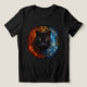 This stunning fantasy design features a black panther enveloped in the elemental forces of fire and ice, framed by an ornate celestial mandala. One side of the panther glows with fiery orange embers, while the other shimmers with cool cosmic blues, symbolizing duality, balance, and inner power. Its piercing heterochromatic eyes—one burning amber, the other electric blue—draw you into a world of mystical energy and fierce calm.