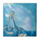 "Guardião Célestial do Cisne" Uma cena de fantasia caprichosa e serena desenrola-se debaixo de um arco-íris radiante e espetado por estrelas que se arca graciosamente através de um céu tranquilo, de rasto azul. No centro está uma figura angélica, revestida de um vestido azul pálido e fluente, suas delicadas asas se despedaçam como se fosse uma bênção de médio. Ela se posiciona sobre uma ilha rochosa cercada por águas calmas, escutadoras, onde gansos brancos graciosos flutuam suavemente, somando ao encantamento do momento. Sobremesa, uma ave branca luminosa voa através de um feixe de luz divina, lançando um brilho etéreo.