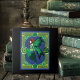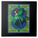 Uma fada de cabelo vermelho em verde com nó celta verde funciona como pano de fundo.