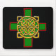 Céltica Cross Knotwork in Green and Red Mousepad