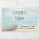 Obrigado de casamento, você usa rótulos com uma bela imagem rústica. Cores sutis de azul claro, marrom arenoso e branco suave. Uma cena de praia com um barco na praia com uma rede de pesca pendurada ao lado. Um olhar elegante.