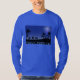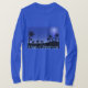 Camisa casual de manga longa para homens com pescoço de tripulação é mostrada em Azul. O gráfico impresso mostra os sábios visitando o Santo Nascimento no gerente. O texto diz Feliz Natal. Personalizar ou comprar como está.