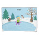 Patinação no gelo na cena do inverno para a mala solta personalizada com patinação no gelo infantil e 3 cães assistindo.